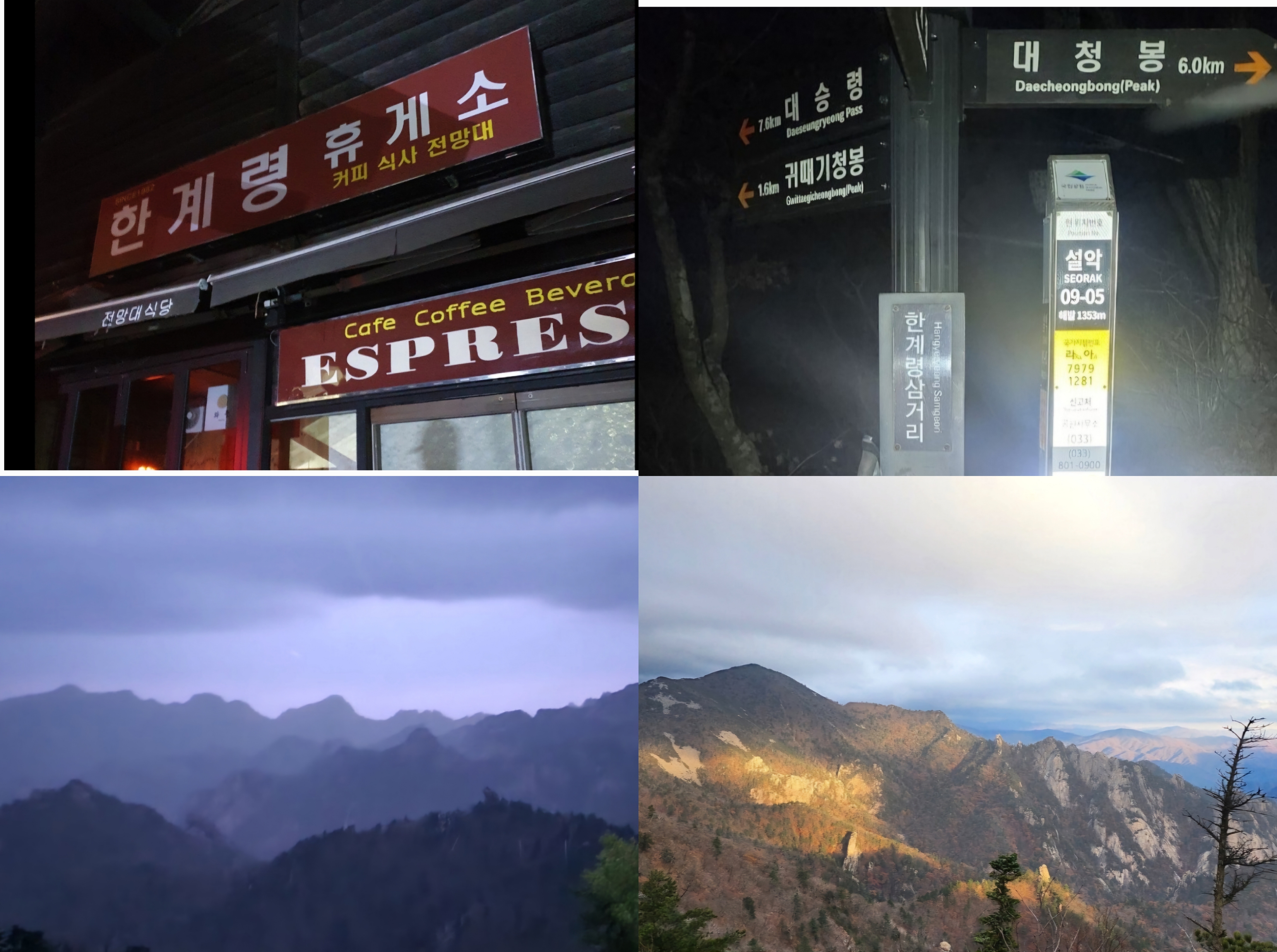 [한계령- 삼거리 - 끝청 - 중청 - 대청 - 소청 - 희운각 - 천불동 - 소공원]