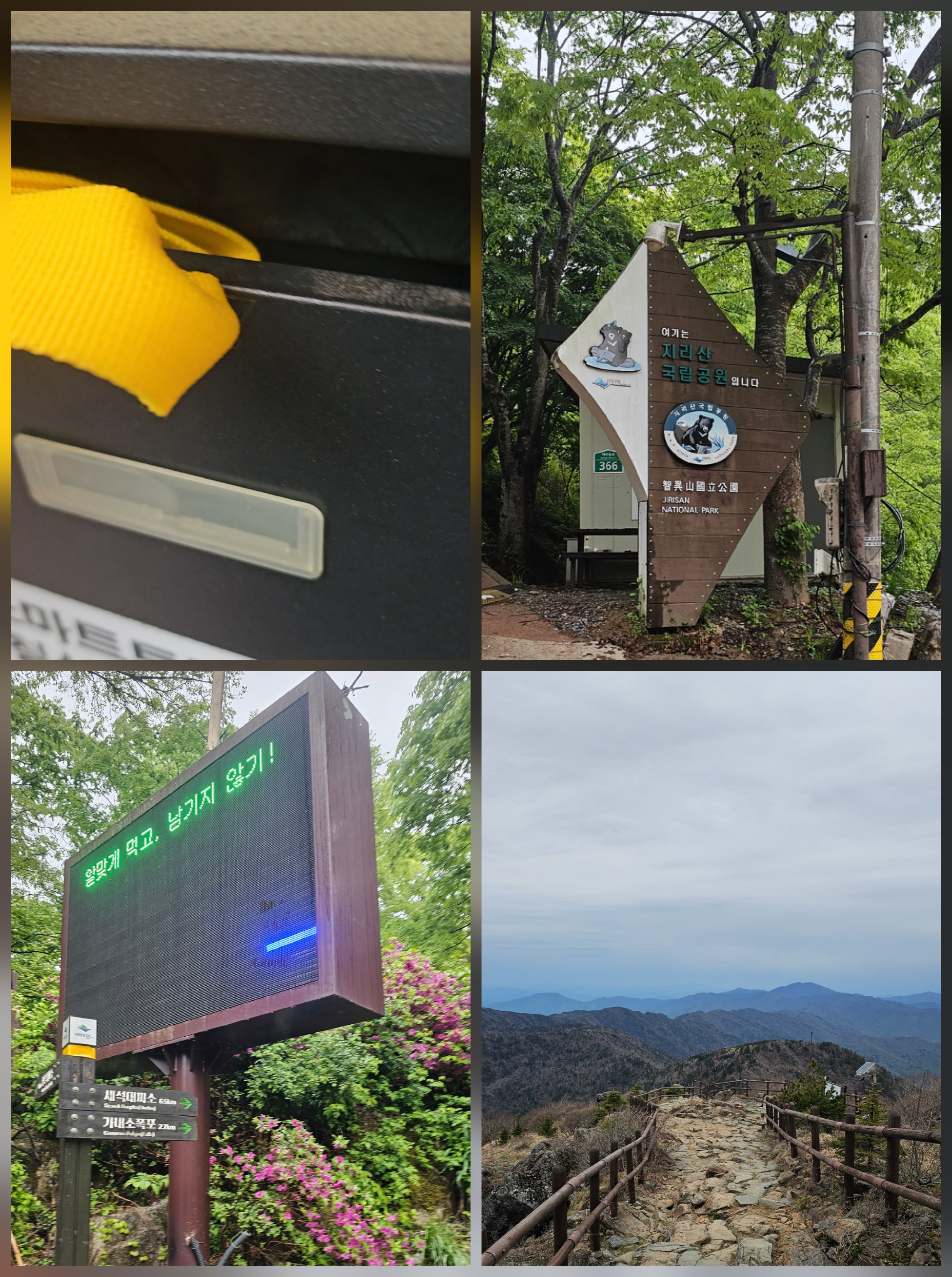 노란띠는 천왕봉 가기 위해 필요한 것이고 태그는 길 잃어버리지 않게 하기 위함이다.
