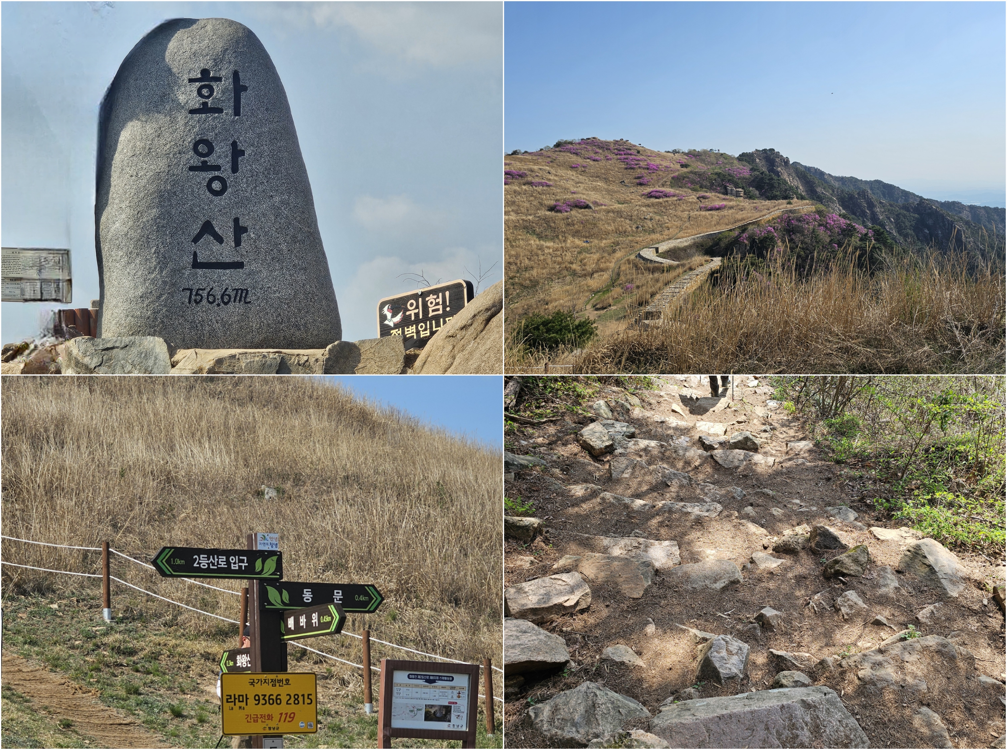 현재 계절은 봄입니다! 창녕 화왕산에 진달래가 만개하여 꽃을 보러 갔습니다. 오늘의 코스는 자하곡 매표소 쪽에 주차를 하고 자하곡 1번 등산로를 통해 산불감시 초소 - 배바위 - 동문 허준세트장 - 진달래 군락지를 본 후 다시 동문으로 돌아온 후 화왕산 정상으로 갔다가 서문 - 자하곡 2 등산로로 하산을 합니다. (사실 1번 등산 코스로 올라가 3번으로 내려오려 했는데 이정표를 보지 못해 2번으로 내려왔다. )