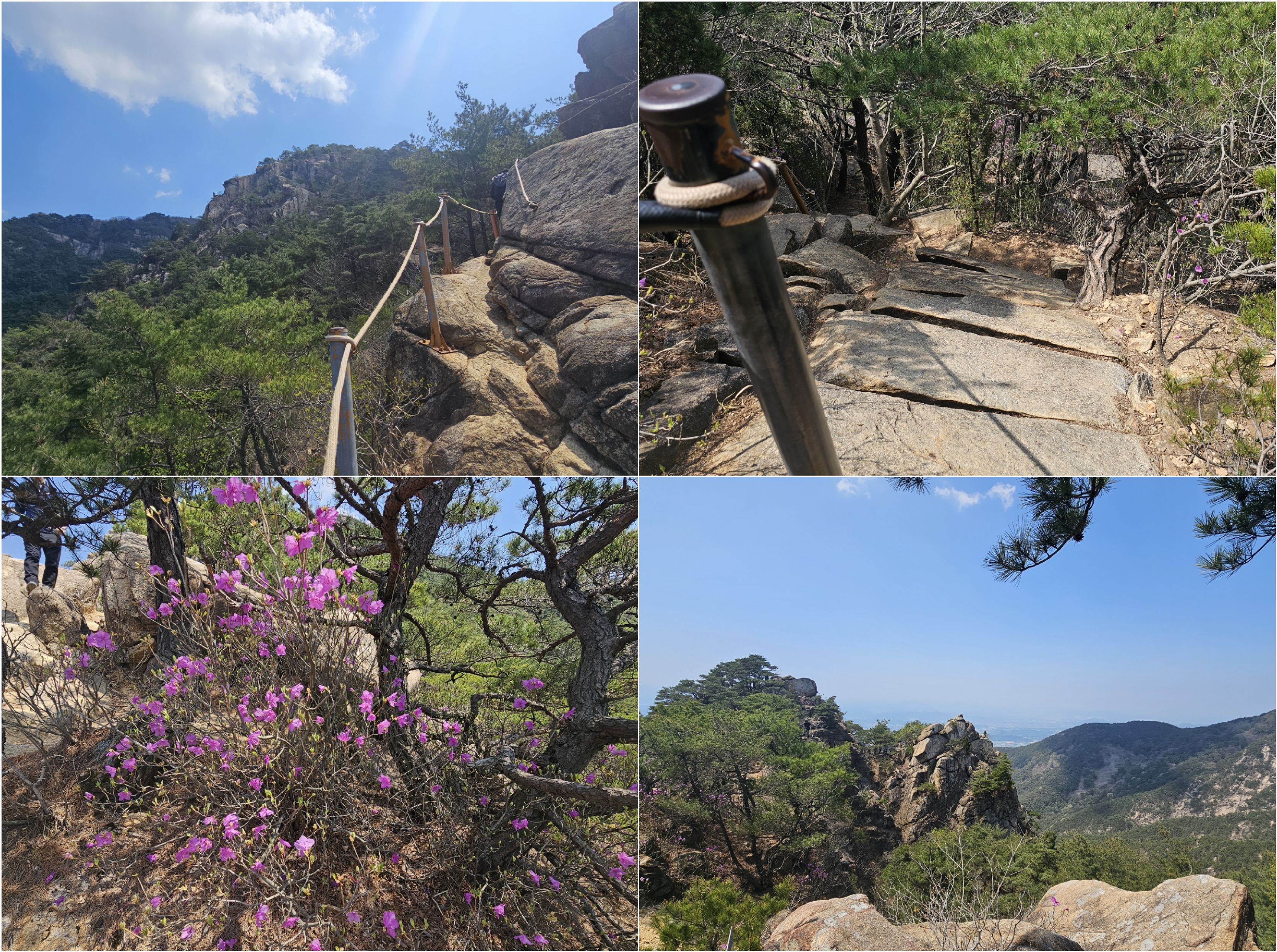 두부 바위도 있고 진달래도 있고 풍경도 좋고 공기도 맑습니다. 하지만 난간대를 잡고 등산하는 것은 재미있을 것 같습니다. 재미있습니다.!!