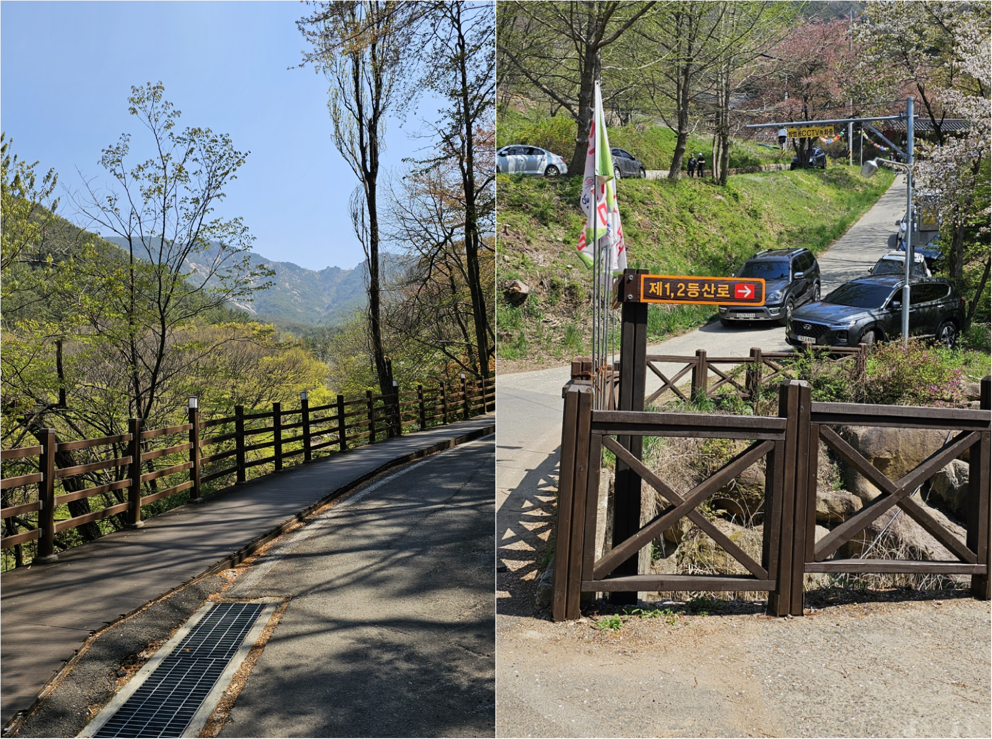 주차장에서 차를 주차하고 올라가는 길이다. (내가 생각하기에 늦게 가면 주차할 공간이 부족하다) 여기서부터 등산 입구 가는 길에 화장실은 1개 있는 것 같다. 그 후 화장실은 체육공원 그 다음 화장실은 허준 세트장 가는 길에 있다. 입구 도착! 그럼 오늘의 등산 코스를 한번 살펴본다.