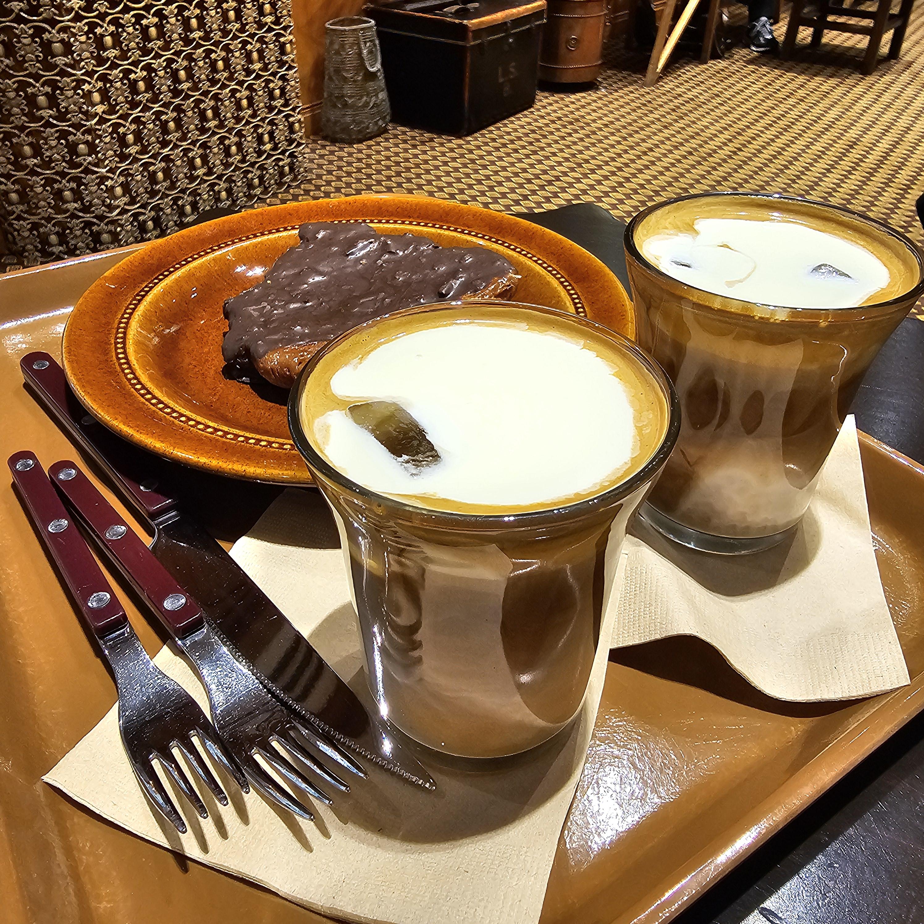 조금 있다 커피가 나오고 카멜 커피를 마셔보니, 위에 하얀 부분이 거품이 아니라 크림인거같다. 달달하다. 난 커피 맛을 표현 할 수가 없다. 그냥 그저 크림이 맛있었다. (크림만 먹어도 맛있는 정도?) 저 빵은 크로와상이 빠짝 말라 초코를 바른 느낌이다. 겉에 설탕이랑 초코를 발랐는데, 난 조금 단걸 좋아하지 않아서 그런지, 아니면 커피가 달아서 그런지, 빵이 조금 달았다. 하지만 커피는 한번쯤 맛볼만하다.(내 취향은 빵이 달면, 커피는 달지 않은걸로)(이 모든 건 내 객관적인 생각!)