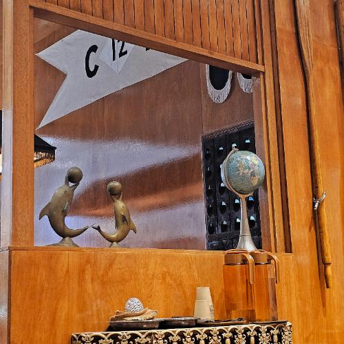 그렇게 자리에 앉아 내부를 보는데 인테리어는 마치 나무 디자인으로 큰 배에 탄 느낌이다. 이 카페는 주제가 '배 내부'인것같다. 소품들이 다 배를 상징하는 것같았거든. 난 이런 사소한 디테일이 좋았다. 매장 직원까지 마린복?을 입고 있기에 그러나 안에 자리는 조금 협소했다.(내부가 작다는게 아니라 자리의 숫자가 작은느낌?) 아! 마치 '만화 원피스'가 현실로 만들면 이런 느낌이지 않을까?