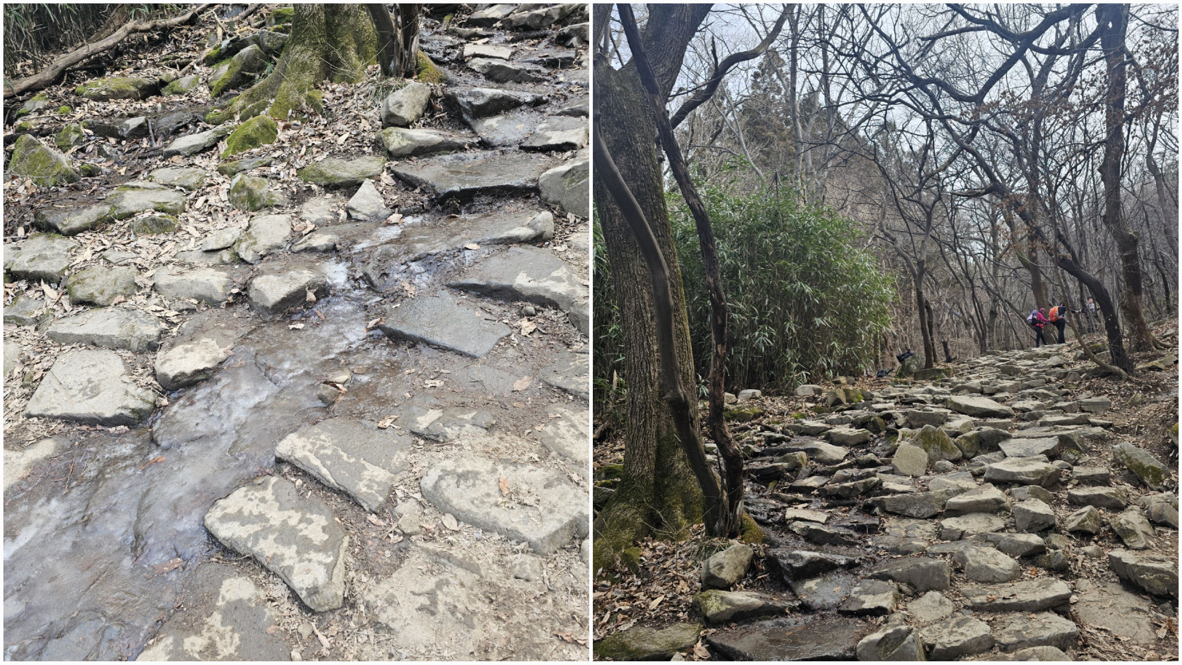 이런 식으로 땅이 얼었기에 잘 보며 올라가야 한다. 왜냐면 내려오는 사람 10 중 1명 꼴로 넘어졌기 때문이다. 옆에서 이 모습을 보니 정말 아프겠더라.