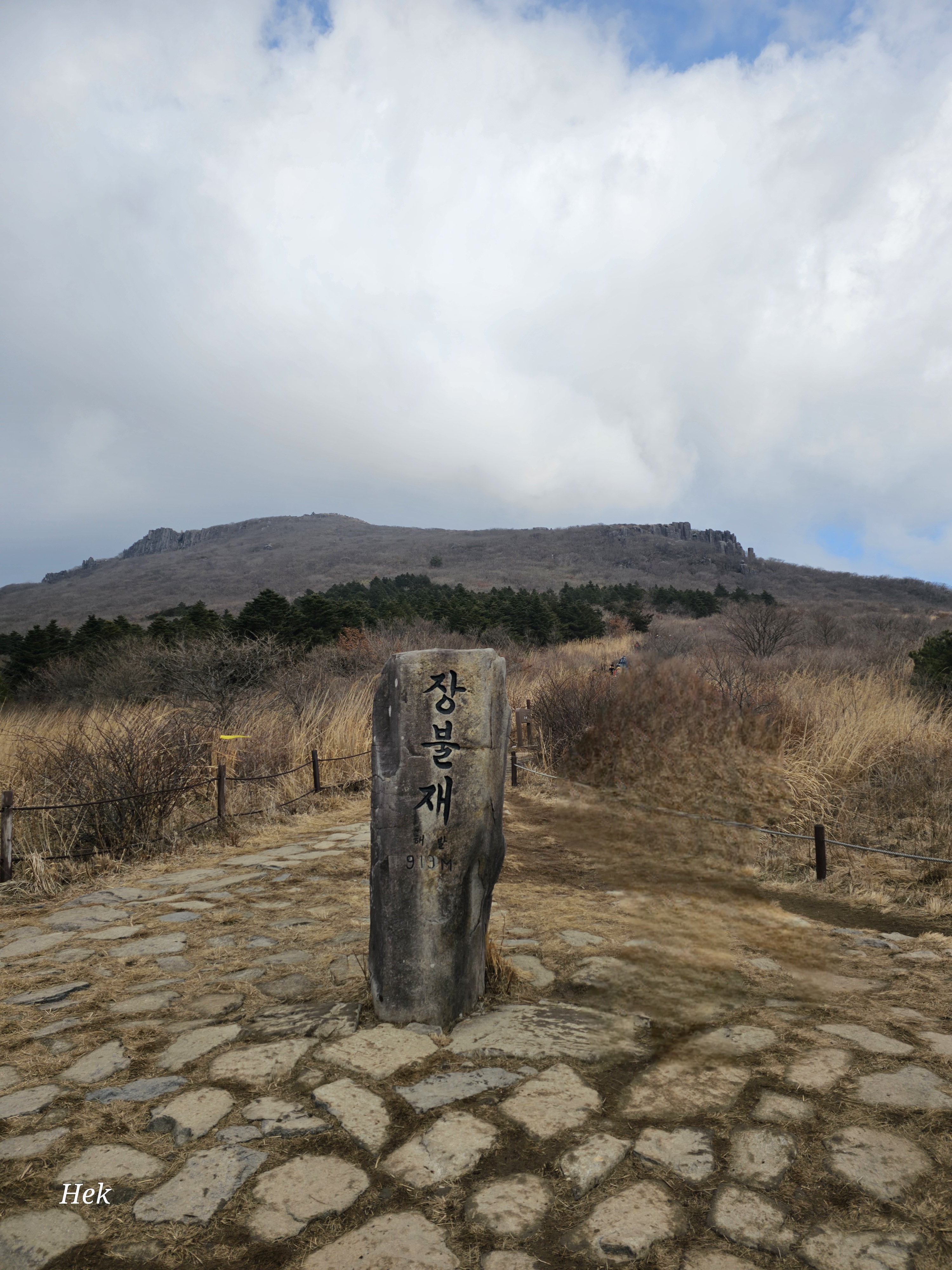 중머리재에서 올라오면 '장불재'에 도착한다. 저 뒤에 보이는 바위가 입석대, 서석대이다. 이 비석 뒤로 마지막 걸음을 옮긴다. 올라가면 제일 처음 만나는 입석대에 사진 찍기 위해 사람들이 너무 많다. 그렇기에 나는 직진한다. (사실 20m 만 올라가면 되지만 계단이기에 패스)